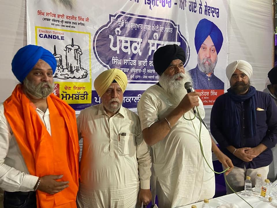 21 ਮਾਰਚ ਦਿਨ ਐਤਵਾਰ ਨੂੰ ਵਾਰਡ ਨੰਬਰ 24, ਰਵੀ ਨਗਰ (ਵਿਸ਼ਨੂੰ ਗਾਰਡਨ) ਵਿਖੇ ਸ੍ਰੀ ਅਕਾਲ ਤਖ਼ਤ ਸਾਹਿਬ ਦੇ ਸਾਬਕਾ ਜਥੇਦਾਰ ਅਤੇ ਪੰਥਕ ਅਕਾਲੀ ਲਹਿਰ ਦੇ ਪ੍ਰਧਾਨ ਸਿੰਘ ਸਾਹਿਬ ਭਾਈ ਰਣਜੀਤ ਸਿੰਘ ਨੇ ਬਹੁਤ ਪ੍ਰਭਾਵਸ਼ਾਲੀ ਇਕੱਠ ਨੂੰ ਸੰਬੋਧਨ ਕੀਤਾ। ਇਸ ਮੌਕੇ ਤੇ ਸੰਗਤਾਂ ਦੀ ਮੰਗ ਅਨੁਸਾਰ ਸਰਦਾਰ ਮਨੋਹਰ ਸਿੰਘ ਨੂੰ ਵਾਰਡ ਨੰਬਰ 24 ਤੋਂ ਪੰਥਕ ਅਕਾਲੀ ਲਹਿਰ ਵਲੋਂ ਉਮੀਦਵਾਰ ਐਲਾਨਿਆ ਗਿਆ।