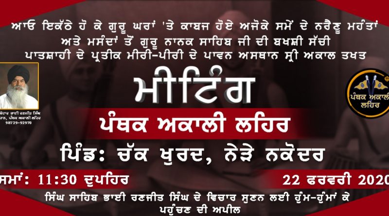 “ਪੰਥਕ ਅਕਾਲੀ ਲਹਿਰ ਨੂੰ ਸਮਰਥਨ ਦੇਣ ਲਈ ਵਿਸ਼ੇਸ਼ ਮੀਟਿੰਗ ਕਰਵਾਈ” ਪਿੰਡ: ਮਾਨਵੀ, ਨੇੜੇ ਮਲੇਰਕੋਟਲਾ